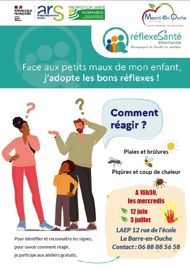Dans le cadre des ateliers Santé des familles, découvrez comment réagir face aux coups de soleil, piqûres, plaies et brûlures,