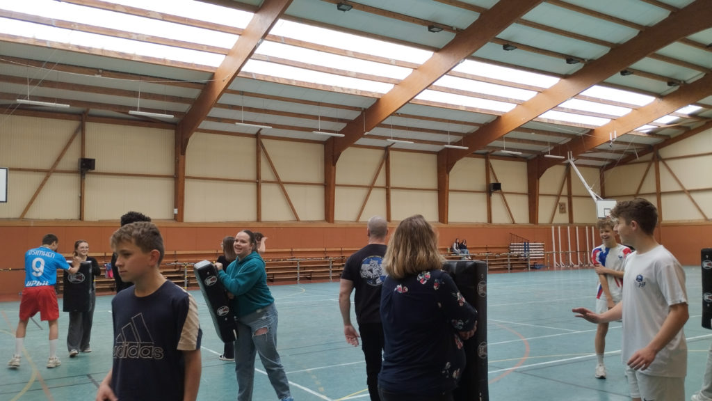 - Mercredi 17 avril, initiation aux techniques de maîtrise corporelle avec Joret RICHARD de l’association Self Défense Coaching14. Les adolescents ont pu déployer leur énergie à la pratique du krav-maga et du self défense, en apprenant différentes pratiques comme les principes de la sécurisation et les différentes menaces et attaques.