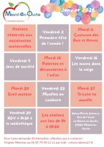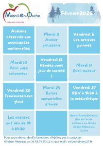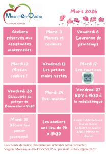 - Mardi et vendredi de 9h à 11h30 au groupe scolaire de La Barre-en-Ouche