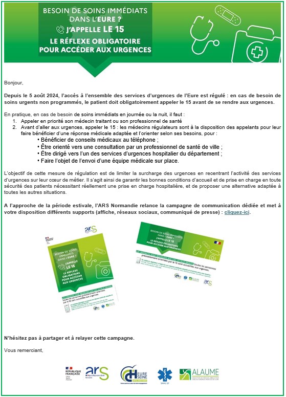 Urgences médicales de l’Eure : 02 32 33 32 32