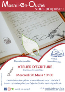 La médiathèque de Mesnil-en-Ouche vous propose, un « atelier d’écriture » le mercredi 20 mai 2026 à 10h.