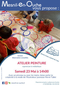 La médiathèque de Mesnil-en-Ouche vous propose un « atelier peinture » le samedi 23 mai 2026 à 14h00.