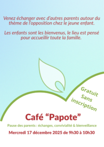 Le LAEP vous propose un Café « Papote » le mercredi 17 décembre 2025 de 9h30 à 10h30 au sein de leurs locaux.