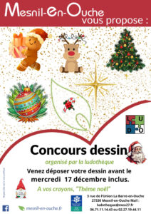La ludothèque de Mesnil-en-Ouche vous propose un concours de dessin thème Noël à déposer avant le mercredi 17 décembre 2025.