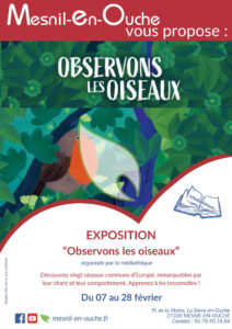 La médiathèque de Mesnil-en-Ouche vous propose une exposition pour observer les oiseaux du 07 au 28 février 2026.