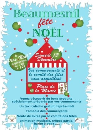 Les commerçants et le comité des fêtes de Beaumesnil vous accueillent place de la mairie. Au programme : des bons produits spécialement préparés ... Le samedi 13 décembre 2025 -