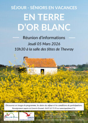 Réunion d'information - séniors en vacances Le CCAS de Mesnil-en-Ouche vous propose une réunion d'information sur le séjour 2026 de séniors en vacances, ... Le jeudi 5 mars 2026 -
