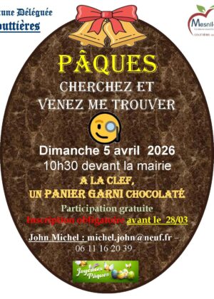 Le comité des fêtes de Gouttières vous propose sa traditionnelle chasse aux œufs. Venez chercher et trouver les œufs de Pâques et repartez avec un ... Le dimanche 5 avril 2026 -