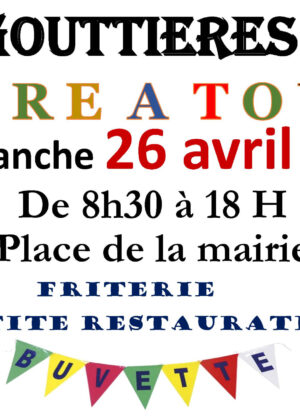 Le comité des fêtes de Gouttières vous propose une foire à tout. Friterie et restauration sur place. ... Le dimanche 26 avril 2026