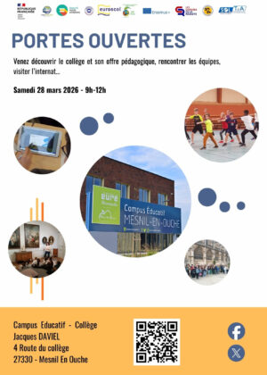 Le collège Jacques Daviel vous propose une journée portes ouvertes le samedi 28 mars 2026 de 9h à ... Le samedi 28 mars 2026