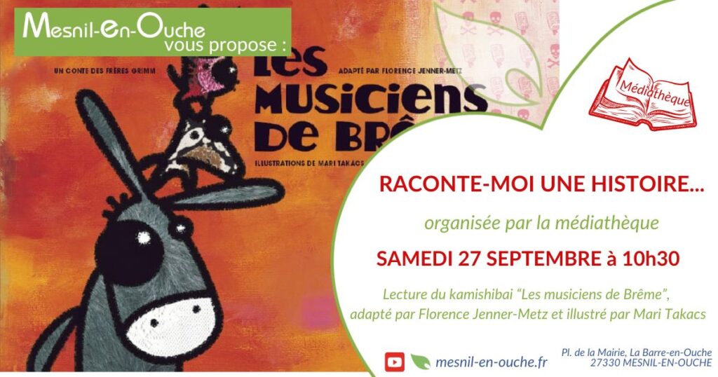 La médiathèque vous propose de découvrir Les musiciens de Brème avec la lecture d’un Kamishibaï.