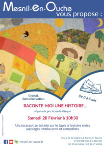 La médiathèque de Mesnil-en-Ouche vous propose Raconte-moi une histoire pour les 0 – 5 ans, le samedi 28 février 2026 à 10h30.