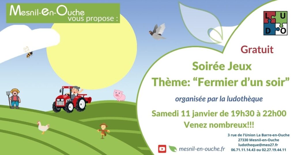 La ludothèque de Mesnil-en-Ouche organise une soirée jeux sur le thème « Fermier d’un soir »