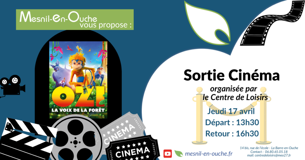 Le Centre de Loisirs vous propose une journée à Cinéma lors de la deuxième semaine des vacances d’avril.
