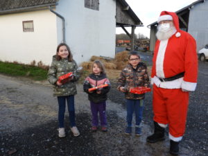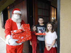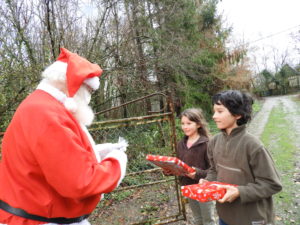Accompagné de ses lutins et des maires délégués , il a apporté les cadeaux offerts par la Commune de Mesnil-en-Ouche aux enfants de 0 à 12 ans.